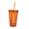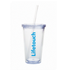 18 oz double wall tumbler with a screw-on lid and matching straw. Sweat proof design for cold beverages only. 6.75" High